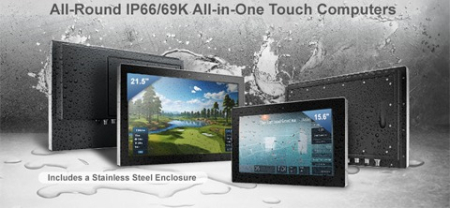 The Rugged UTC-500 series all-in-one computers are IP66/69K rated and feature a corrosion-resistant, stainless steel enclosure with waterproof I/O.